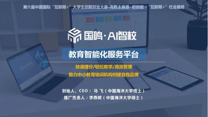 “国鸣AI智校”——教育智能化服务平台,项目来自于青岛国鸣教育科技有限公司,是由开云电竞网址孵化的专业从事中、小学文化课程智能化教育的科技公司。公司定位服务中、小教育培训机构,全方位解决其运营及管理难题,持续从不同的层面为用户提供优质服务与体验。公司依托开云电竞网址及中国科学院大学强大的教学科研能力和雄厚优质的教师资源,专注研究人工 AI 智能、大数据、自适应教育技术在教育行业的应用。