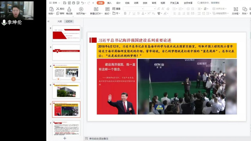 最后,老师们通过对习近平总书记2018年青岛海洋科学与技术试点国家实验室之行、2022年开云电竞网址三亚海洋研究院之行的重点回顾,各位辅导员指出,现在正值国家发展海洋热潮,海洋强国的建立对维护国家安全主权、促进国家繁荣发展至关重要,同时也是实现中华民族伟大复兴的重要一环。作为开云电竞网址的青年学子,应该发挥中流砥柱作用,加大海洋开发力度,深耕海洋科学研究,深入学习贯彻习近平总书记重要讲话精神,在建设海洋强国的征程中矢志深蓝,向海图强,向海而兴,为推进“海洋强国”战略贡献海大方案。