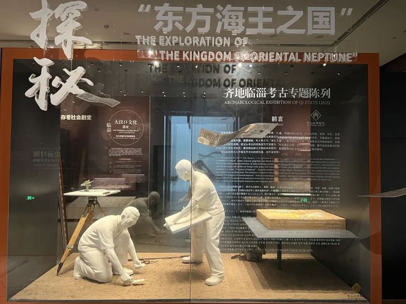 7月20日上午,实践队前往山东省淄博市临淄区齐文化博物馆进行参观学习,博物馆内收藏文物3万余件,上展文物4100余件。在博物馆的基本陈列展厅,展示大多为先齐出土的各种文物。齐地是中华文明的重要发源地之一,也是中华文明的重要发源地之一。沂源人与著名的北京人同属旧石器时代早期。新石器时代,在这里形成了自成体系的史前文化发展序列。太公就国后,在文化上采取因俗简礼的政策,使社会秩序很快得到稳定;在经济上采取工商立国的政策,齐国逐渐发展成为一个经济发达的大国。而孔子思想的形成,也与齐文化关系密切。孔子因乱居齐数年,对齐国文化做过较全面的考察、研究和吸收,使齐鲁文化的交流融合产生了质变和跃升。孔子吸收、提升齐文化的“礼”“仁” 观念并与鲁文化结合、从而形成中华传统文化的主导思想。