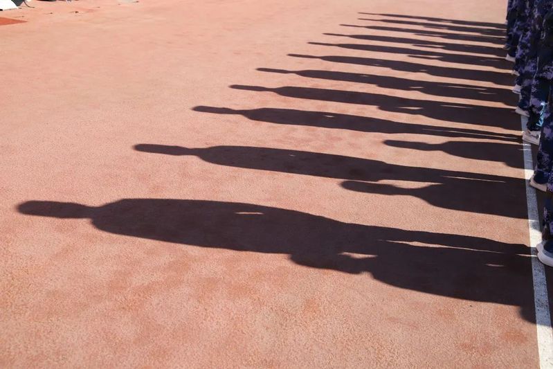 一群少年正在认真训练整齐的队列