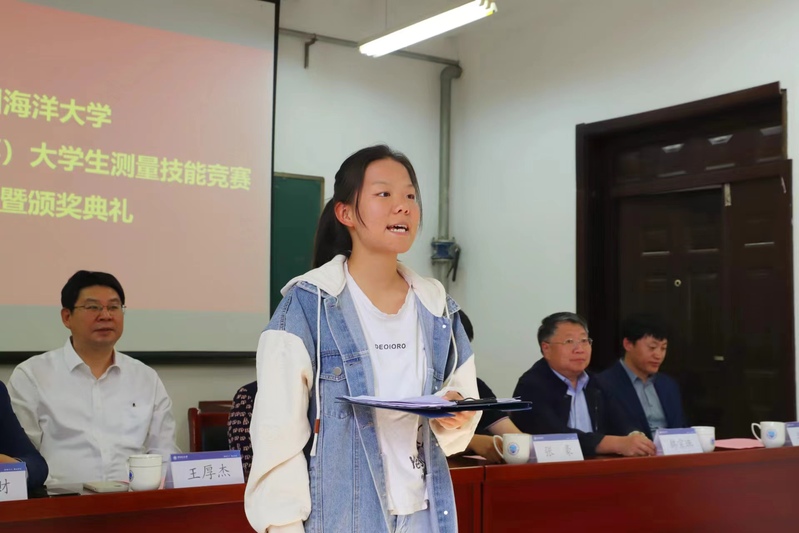 2022级地球信息科学与技术专业学生王佳琪作为获奖代表发言。她首先感谢了学院所有老师和工作人员为参赛成员提供的帮助,感谢中纬公司和瑞源集团的赞助和大力支持,为同学们提供了一个巩固知识、实践探索、合作竞技的平台。同时,她结合个人参赛经历分享了心得体会,认为在比赛中同学们将理论知识与实践操作相结合,不仅提高了自身的技术水平,也培养了同学之间的默契和友谊。