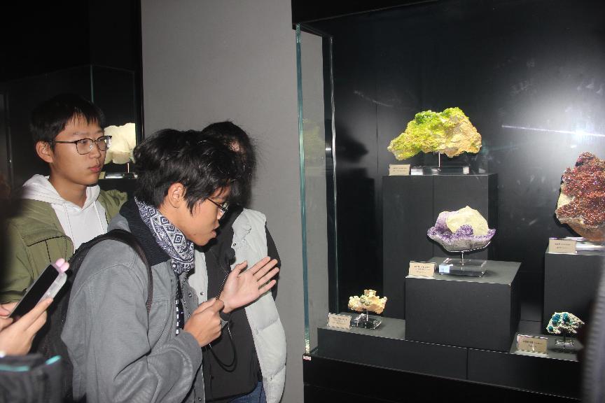 此外,2024级地球信息科学与技术崔凤轩、吕启忠、桑雨锋三位同学也事先通过多种渠道做足功课,在馆内化身“小小讲解员”,从外观形态、内部构造、相关逸闻趣事等多个维度向同学们科普了几种常见矿物。这种寓教于乐的形式让专业知识以一种更加通俗亲切的方式融入同学们的记忆中。