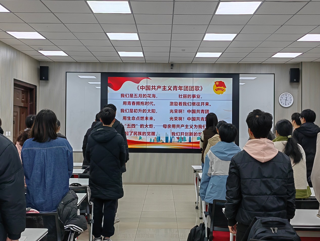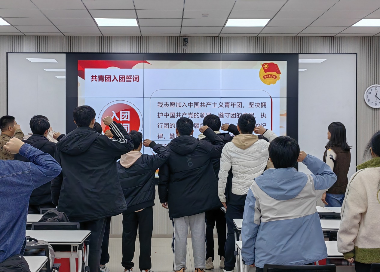 随后,在张婧的带领下,全体参会成员与会人员起立进行入团宣誓。在庄严的入团誓词中,新团员们充分意识到加入共青团的意义,同时也认识明确了到作为共青团员应当具有的责任感和使命感。