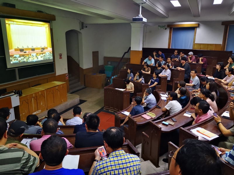 7月5日下午,海洋生命学院党委召开全体党员大会,就习近平总书记在“不忘初心、牢记使命”主题教育工作会议上的讲话精神进行集体学习。会议由党委书记初建松主持,学院全体教职工党员参加会议。