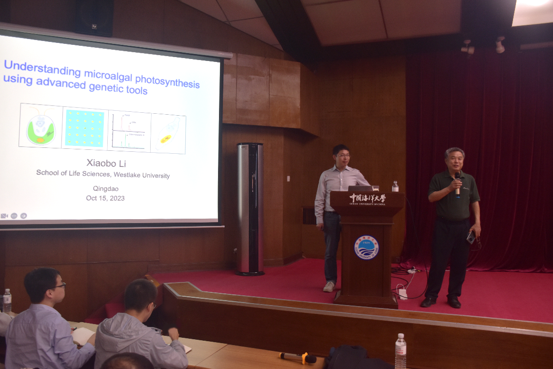 20231015日上午,西湖大学李小波研究员受邀在海洋生命学院进行了“微藻光合作用研究与遗传学工具开发”讲座报告会。李小波研究员长期从事植物学和微生物学研究,致力于阐明光合生物能量代谢及相关调控机制,开发光合生物遗传学与合成生物学研究的革命性工具。李小波研究员曾获美国遗传学会DeLill Nasser奖、国际植物脂类代谢论坛Paul Stumpf奖以及美国植物学家协会Robert Rabson奖,从事藻类代谢与光合作用研究多年,以第一或通讯作者身份在Science2023)、Nature Genetics2019)等期刊上发表论文多篇。报告会由海洋生命学院张玉忠院长主持。