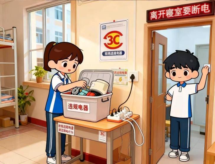 4.离开寝室要断电:手机、电脑、台灯等所有电器,做到“人走电断”,不留安全隐患。