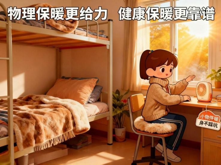 2.小物件暖身不踩坑:选择合规低功率暖手宝,充电时远离床铺,充满即拔;毛绒坐垫,学习工作时,可放在冰凉的椅子上,避免与其直接接触,又能起到保暖作用;还可准备一些暖宝宝,把暖宝宝贴在衣物外层,避免直接接触皮肤,安全又持久。