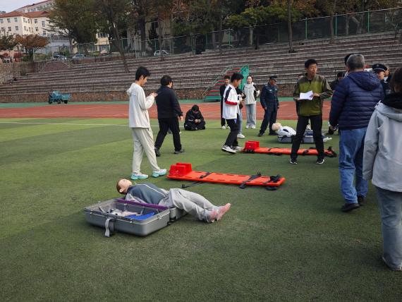 11月6日下午,学院师生积极参与鱼山校区保卫处组织的消防培训演练及消防技能竞赛。生命学生一队、二队、生命教师团队依次完成负重接力跑、现场灭火、合作救援、消防知识问答接力及综合应急救援等一系列项目。此次活动将理论与实践紧密结合,使师生们在沉浸式体验中掌握了险情处置、伤员救助及消防器材使用的关键要领,有效提升了应对火灾的实战能力。他们更以赛场上的卓越表现践行了培训成果,最终荣获学生组一等奖、三等奖和教师组一等奖的佳绩。