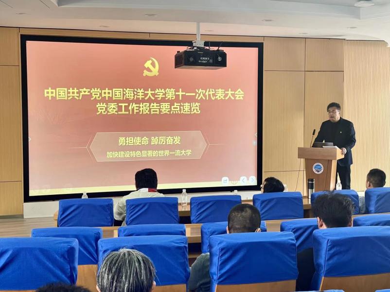 王曙光强调,学校第十一次党代会为学院各项事业的发展指明了前进方向,提供了根本遵循。全院师生要切实把思想和行动统一到党代会精神上来,将会议精神落实到学院事业发展的方方面面,深入研究谋划、拿出硬招实招,以前所未有的责任担当精神、干事创业精神、改革创新精神和勇于斗争精神,为世界一流大学和海洋强国建设贡献新的更大的力量。