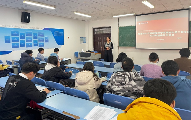 为深入学习贯彻党的二十大精神,坚持不懈用习近平新时代中国特色社会主义思想凝心铸魂,3月16日上午,海洋与大气学院海洋学系研究生第二党支部在学院513教室召开2022年度组织生活会,开展民主评议党员工作。学院党委副书记孙婧、专职组织员刘重阳列席会议,会议由党支部书记肖茹水主持。