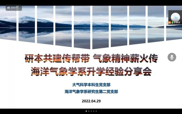 为帮助学院学生及早了解本科升学信息,充分发挥学生党支部的战斗堡垒作用和学生党员的先锋模范作用,4月29日晚,海洋与大气学院大气科学本科生党支部和海洋气象学系研究生第二党支部联合举办了“研本共建传帮带 气象精神薪火传” 海洋气象学系升学经验分享会。