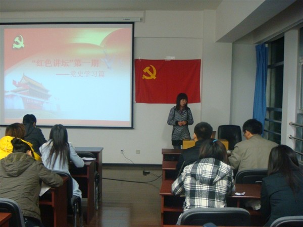 近日,经济学院依托2010级经济学系研究生党支部承办的“弘扬红色文化,庆祝建党九十周年”系列活动正式启动。此活动旨在庆祝中国共产党成立90周年,加深支部成员对党建90年辉煌历程的认识,促进党员在新时期继续积极发扬优良传统,时刻保持党员先进性。 作为“弘扬红色文化,庆祝建党九十周年”系列活动中重要内容的“红色讲坛”活动首先拉开序幕。本期“红色讲坛”旨在加强支部成员的党史教育。支部全体党员、积极分子参加了此次活动,共同学习文献纪录片《党章的历程》。该片介绍了自中共成立以来十六部党章的诞生历程以及几十年波澜壮阔的党建历史,以独特的视角记录了中国共产党思想、理论和政治路线与时俱进的发展轨迹。观看之后同学们纷纷表示被几十年辉煌党建历史所震撼,对党史和党章都有了更加深刻的认识。 据悉,“红色讲坛”活动是该支部的一项品牌活动,每学期举办两期,选取党史学习、时政学习、先进人物学习、先进事迹学习四个主题,加强对支部成员的集中教育。从政治理论到具体实践、从历史到现实,多角度、全方位地学习党的知识,宣传党的思想,弘扬党的精神。 “弘扬红色文化,庆祝建党九十周年”将持续到明年6月,期间还将举办红歌会、红色电影展、红色旅游、学雷锋月等一系列活动,以喜闻乐见的多种方式,切实实践公开承诺,深入、扎实、有效地开展创先争优活动,为建党九十周年献礼。
