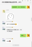 疫情发生突然,按照学校部署要求反应迅速。课程微信群早在学期初就建立,主要是方便大家收取课程相关的通知以及课程资料,一是由于部分选课同学专业、班级与年级分散,互相之间并不熟悉。更是由于“海洋渔业经济学与管理”课程没有适合的教材,一直采用教师讲义的方式,讲义每学期都会根据讲授内容进行完善,因此为了方便大家收取课程资料我们的学期初就建立的微信群。教师一般会在新课前一周将完善好的讲义通过微信群的方式发送给大家,以便大家熟悉材料,有准备的听课。因此微信群的建立也帮助我们在学校要求我们转为线上授课时,及时的通知到每一个人,我们将会采用的平台以及授课方式,做到不漏一人,同学们之间也相互提醒,互通有无。另外课后作业的收取情况,同学间也可以及时通过微信群进行沟通与检查。通过微信群我们顺利的完成了直播课程信息的发布,首次直播过程中操作问题的解决以及作业的收取。