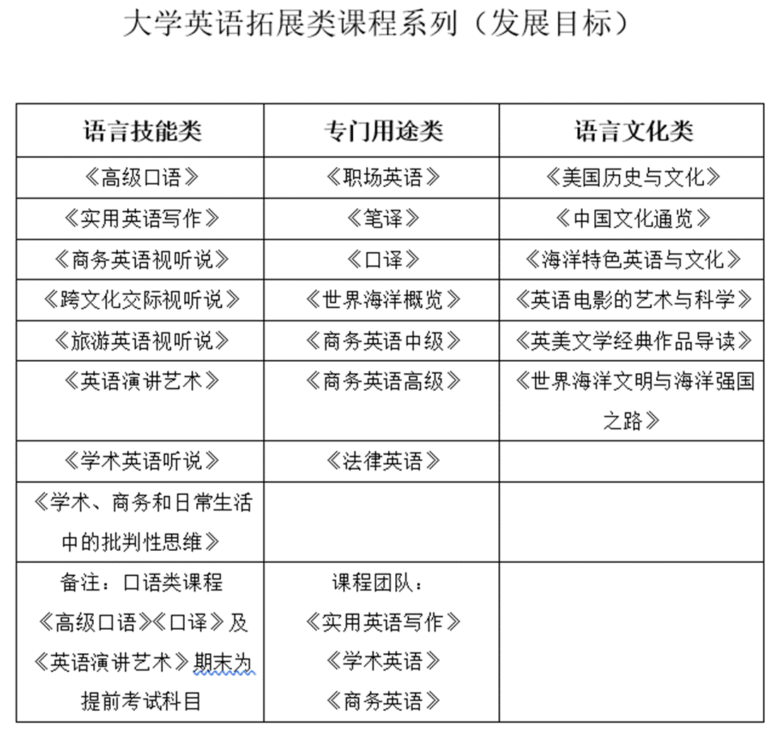 大学外语课程设置一览图
