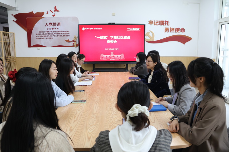 【本站讯】4月28日下午,外国语学院召开“一站式”学生社区建设座谈会。学院党委书记许玲玲与15位学生代表围绕如何发挥好学生党员先锋模范作用、增强学生社区主人翁意识,积极参与社区治理,共同建设党建引领、专业赋能、幸福和谐的学生社区进行了深入广泛的交流。党委副书记戴淑妮参加座谈会。