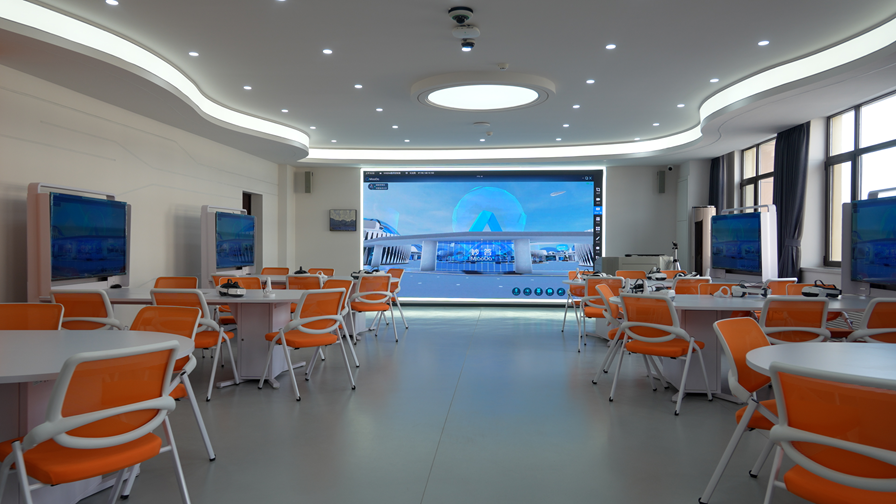 虚拟现实实训室致力于构建多专业发展的教育教学生态系统,以虚拟现实、人工智能、大数据等前沿技术为基础,打造全面的专业语言教育、实践与研究环境。这一生态系统涵盖沉浸式语言智能课堂、外语技能提升平台(包括演讲、辩论、雅思等),涉及英语、日语、朝鲜语、法语、德语,以及大学英语的实践教育,为不同专业的学习者提供了更丰富和更便捷的语言学习和文化体验。
