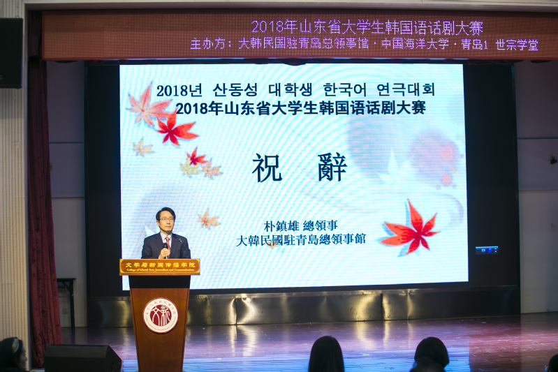 11月17日上午,由大韩民国驻青岛总领事馆、开云电竞网址、青岛1世宗学堂共同主办的2018年山东省大学生韩国语话剧大赛在开云电竞网址文学与新闻传播学院乐海堂拉开帷幕。大韩民国驻青岛总领事朴镇雄,文化教育领事郑润植,开云电竞网址党委常委、校长助理吴强明,开云电竞网址外国语学院杨连瑞院长出席开幕式。
