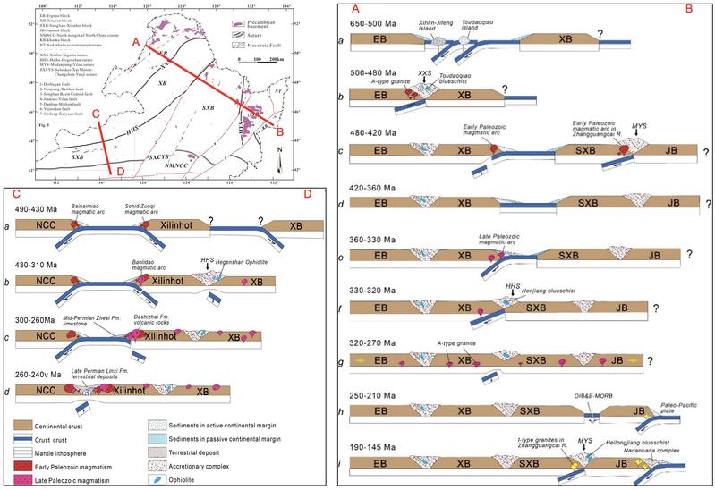 确定了各块体间缝合带的位置和聚合过程:额尔古纳地块与兴安地块沿头道桥-喜桂图-新林缝合带于~500 Ma完成拼接,改变了德尔布干断裂带是两地块缝合带的传统认识;兴安地块与松辽地块沿贺根山-黑河缝合带于早石炭世末完成拼接,改变了早古生代完成拼接的传统认识;佳木斯地块于早古生代与松辽地块沿牡丹江缝合带拼接,而后晚古生代末从松辽地块裂离,并在早侏罗世再次与松辽地块拼接,改变了早古生代一次完成拼接的传统观点;东北聚合后的统一陆块沿索伦-西拉木伦河-长春-延吉缝合带于晚二叠世末-早三叠世从西到东呈剪刀式与华北板块完成拼接。