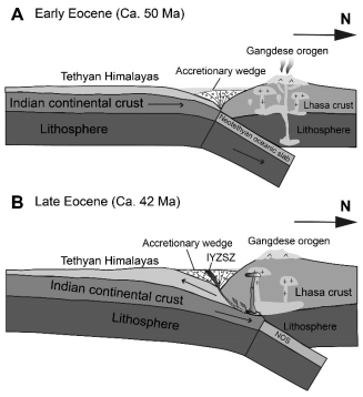 图2. 冈底斯造山带始新世花岗质岩石的成因示意图