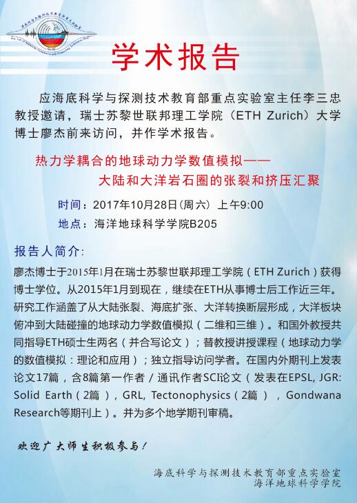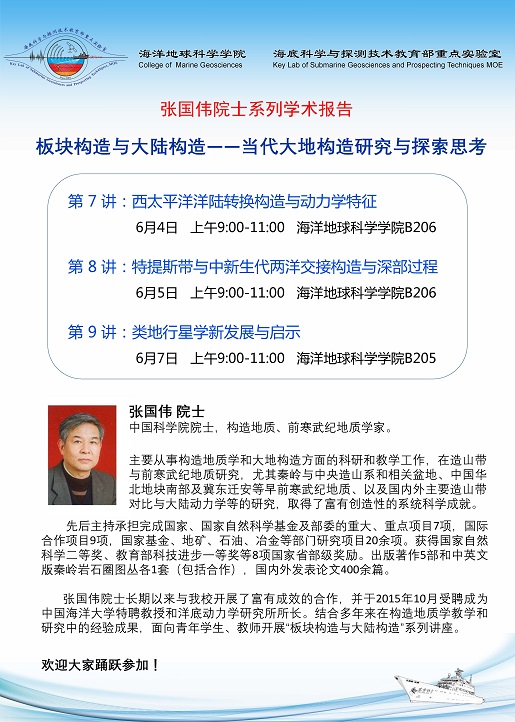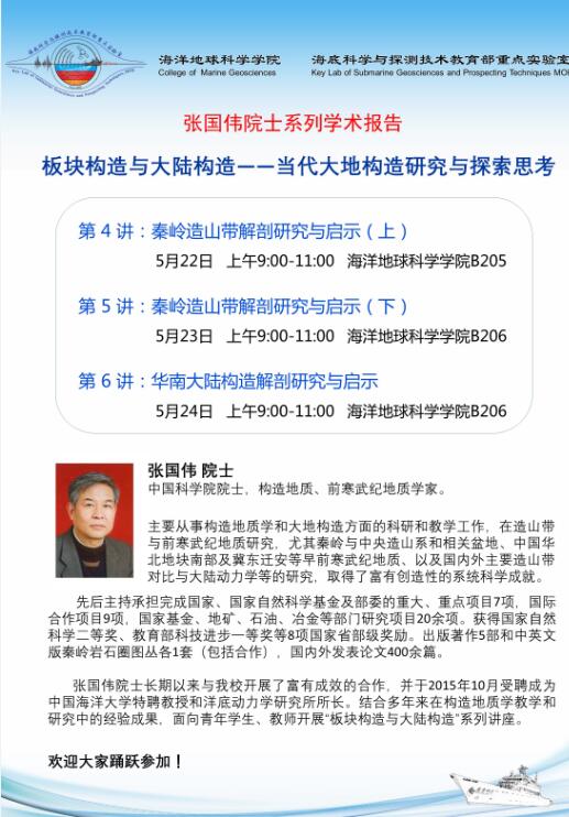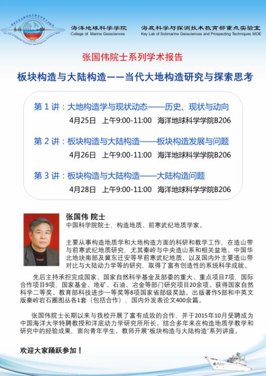 4月28日下午15:00点,海洋地球科学学院(以下简称“地院”)成长讲堂第17讲在地质楼B206教室精彩开讲,张国...