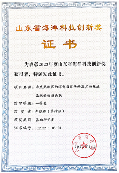 滩浅海海底沉积结构高精度调查方法研究山东地学科技创新奖 |