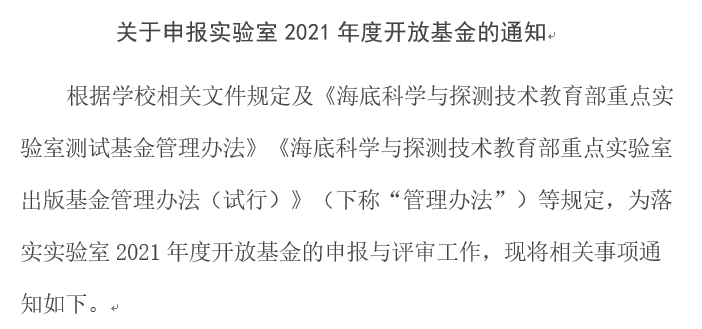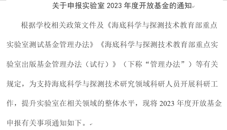 根据学校相关文件规定及《海底科学与探测技术教育部重点实验室测试基金管理办法》《海底科学与探测技术教育...