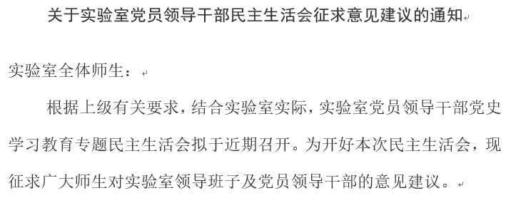 关于实验室党员领导干部民主生活会征求意见建议的通知
