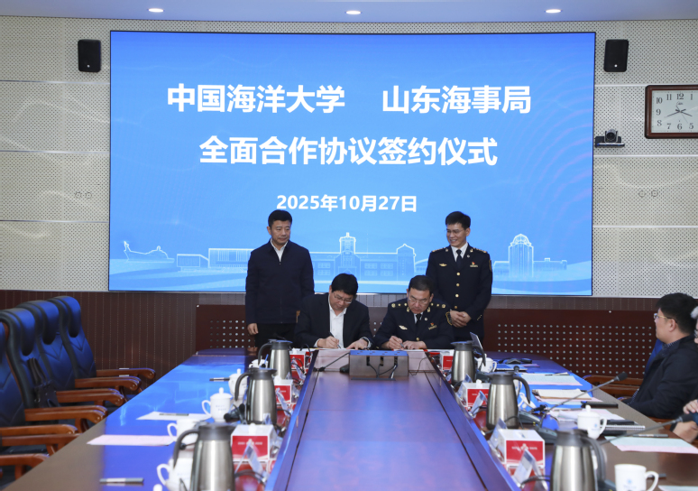 观海听涛讯 10月27日,开云电竞网址与山东海事局全面合作协议签约仪式在开云电竞网址崂山校区举行。山东海事局党委书记、局长马道玖,开云电竞网址党委书记李明出席仪式。