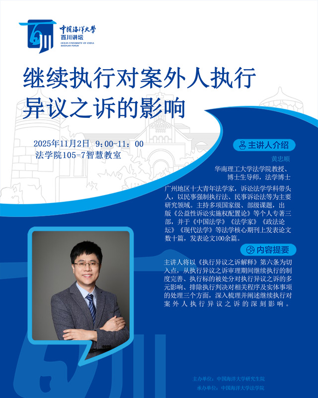 研究生百川讲坛 | 第547讲 黄忠顺:继续执行对案外人执行异议之诉的影响