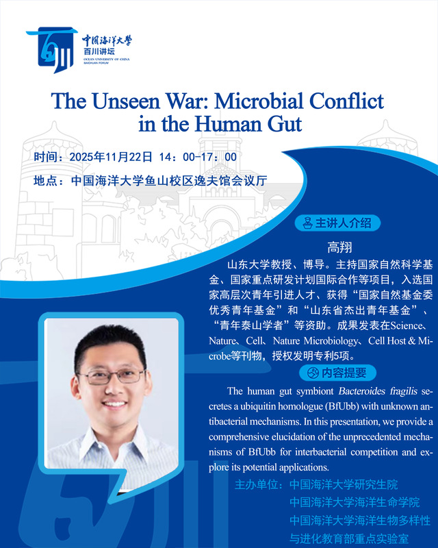 研究生百川讲坛 | 第566讲 高翔:The Unseen War:Microbial Conflict in the Human Gut