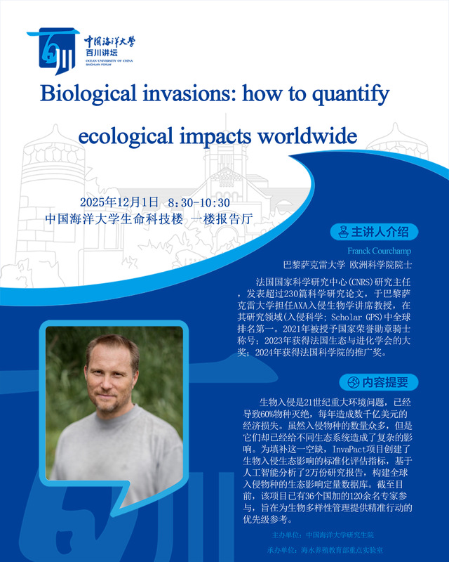 研究生百川讲坛 | 第572讲 Franck Courchamp:Biological invasions:how to quantify ecological impacts worldwide