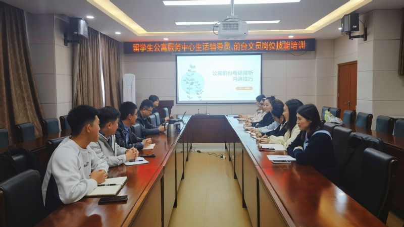 本站讯 为强化生活辅导员、前台文员岗位专业技能,提升服务沟通能力与工作效能,11月14日,留学生公寓服务中心组织开展公寓前台电话接听沟通技巧专项培训。中心前台文员、生活辅导员等13人参加培训。