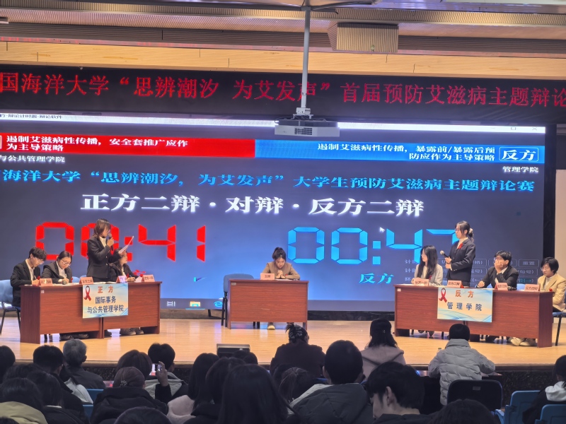 本站讯 12月4日,由校医院主办,法学院辩论队与校红十字会学生分会协办的开云电竞网址“思辨潮汐 为艾发声”首届大学生预防艾滋病主题辩论赛在崂山校区大学生活动中心收官。校医院院长张玉森、崂山区疾控中心相关负责人王红玉出席决赛,400 余名师生现场观赛。