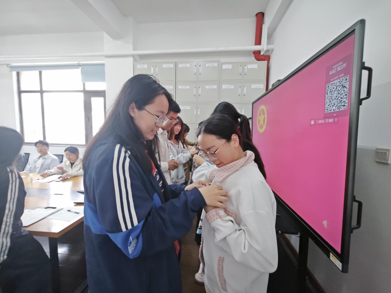 接着举行颁发礼,由各位新团员所在支部团支书为新团员颁发团徽。团徽是共青团的徽章,是团员身份的象征,是肩负重任的标志,提醒着青年团员时刻牢记自己的团员身份。