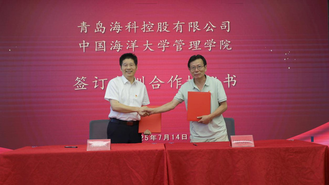 金天宇表示,学院以红色铸魂为原点,以蓝色拔尖人才培养为引擎,正在加快构建新商科“守正创新”的知行体系。青岛蓝谷是助推海洋强国建设的战略承载区,双方此次共建,既是深入贯彻新时代党的建设总要求,深化“一融双高”建设的重要举措,又是深化校地协同创新的重要实践。双方将以党建为引领,以科研为核心,围绕学院的研究方向和蓝谷的实际需求,加强在人才培养、科研转化、社会实践等领域的协同创新,推动教学、科研、人才培养与地方产业需求的精准对接。
