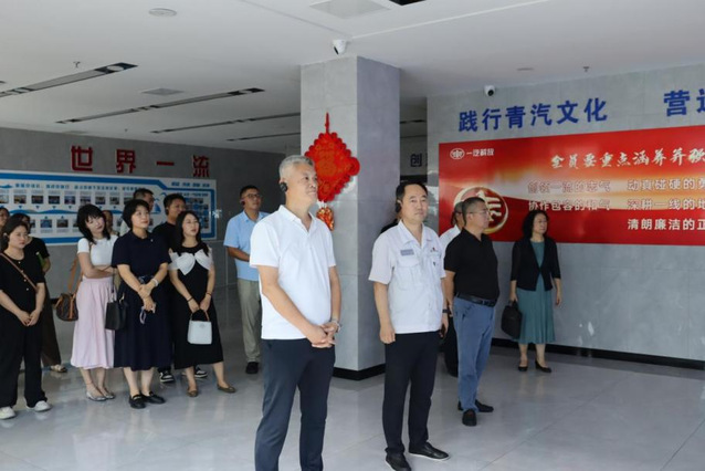 在解放青汽副总经理段英慧先生等相关部门负责人的引导下,学院师生党员代表参观了解放青汽即墨厂区焊装车间与总装配二车间。解放青汽不仅坚守大国工业精益求精的匠心,更以智能制造先行者的姿态,将数字化与智能化深度融入生产全链条。