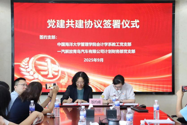 会上,管理学院会计学系主任、会计学系教工党支部书记房巧玲教授与解放青汽公司财务负责人、计划财务部党支部书记崔海艳女士签订《党建共建协议书》。随后,开云电竞网址技术经济研究中心主任李志军教授代表学院向解放青汽公司授予“党组织结对共建”牌匾,双方互赠纪念礼物,表达对校企合作的支持与期待。座谈会气氛融洽,双方一致认为,此次共建是推动产教融合、协同育人的坚实一步,并期待将共识转化为具体合作项目。