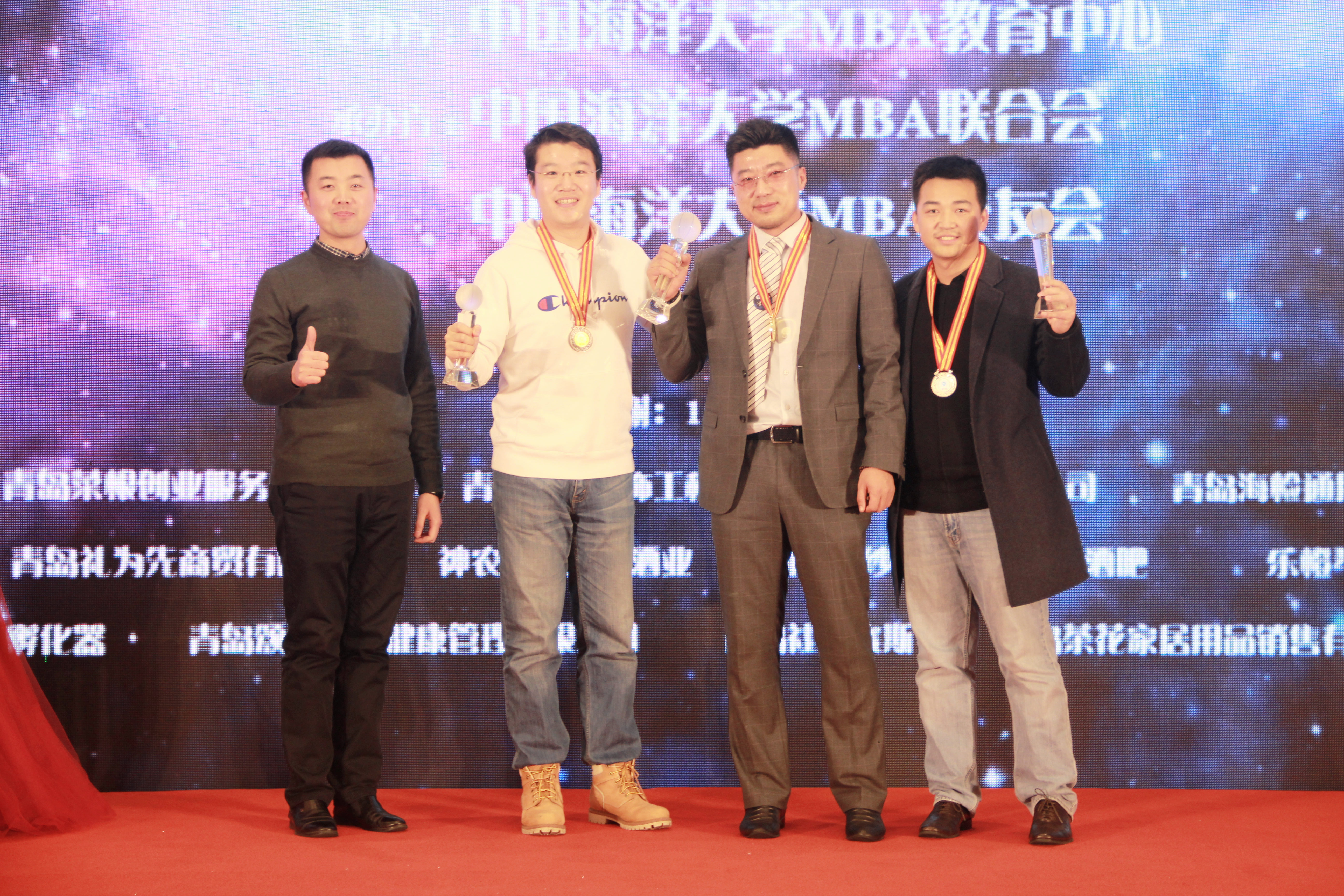 校友会作为联合会心手相牵的同胞兄弟,为联合会带来诚挚的祝福,海大MBA校友会会长马辰、副会长庄亮、张在文及曾程带来了合唱《友谊之光》。