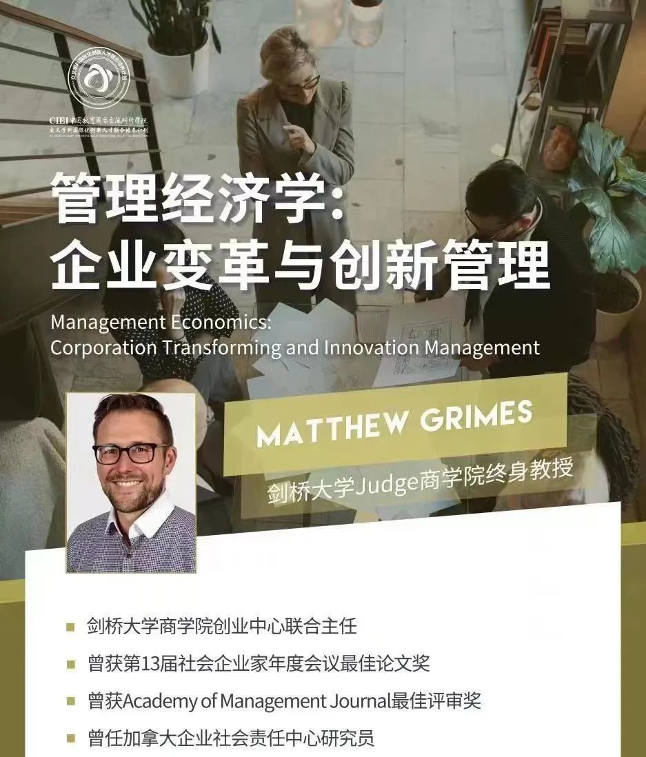 2023年4月19日晚,剑桥大学Judge商学院终身教授、剑桥大学商学院创业中心联合主任Matthew Grimes受邀为开云电竞网址MBA师生带来题为《企业变革与创新管理》的线上学术讲座,讲座内容丰富多彩,聚焦行业前沿,具有极高的启发性和引导性。教授围绕创业机会的发现与识别,详细介绍了不同的创业方法和商业模式,引导学生了解创意产生、市场可行性评估、客户渠道开拓、市场反馈评估、竞争与外部环境分析、成长潜力、创意推销与资金筹措等一系列过程,从而更好地理解成功创业的实践、过程与方法,培养评估新企业潜力的研究与分析能力。●颠覆性创新和基于价值的创新后疫情时代,无论是经济体、组织还是个人都需要思考,如何在充满困难和不断变化的环境下更好的生存?如何通过不断的尝试和探索,寻找到新的发展方向?如果只专注于目前看似有利可图的事情,而没有更好的去探索发现或者追寻未来有利可图的事情,那未来的发展之路可能并不明朗。由此,颠覆性创新和基于价值的创新就显得十分重要。●颠覆性创新的5大趋势1.数字化:更精准的掌握市场需求变化;2.平台化:提高市场链接速度和范围,简化数据查找流程;3.民主化:更便捷地获取市场信息;