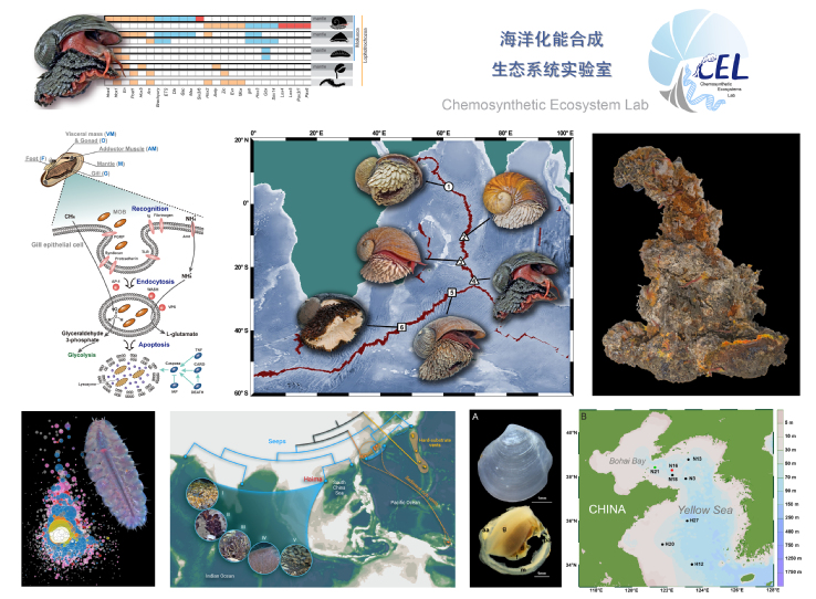 主要研究方向简介:主要研究领域为海洋化能合成生态系统(如深海热液、冷泉以及浅海富含有机质的沉积环境)中海洋无脊椎动物(以贝类为主)与微生物的共生关系、物种适应性演化、生物矿化以及种群连通性。采用的手段包括深海原位实验、生物信息学、分子生物学、同位素化学等。