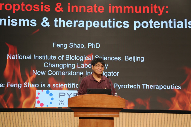 邵峰院士结合近年发表在《Science》《Nature》等顶尖期刊的多篇代表性论文,详细介绍了这些研究的关键发现、实验策略与结构学证据,阐明了细胞焦亡从分子触发到孔形成再到免疫调控的完整链路。报告内容包括细胞焦亡分子家族(Gasdermins)的结构与激活机制,caspase-4/11 等在 IL-18 识别与成熟中的作用,以及细胞毒性淋巴细胞通过 Granzyme A 介导 GSDMB 裂解与靶细胞焦亡的途径。邵峰院士还阐述了细胞焦亡在抗肿瘤免疫中的应用,并分享了细菌代谢产物(如 ADP-heptose)被细胞内受体识别导致固有免疫反应的最新结构与功能证据。