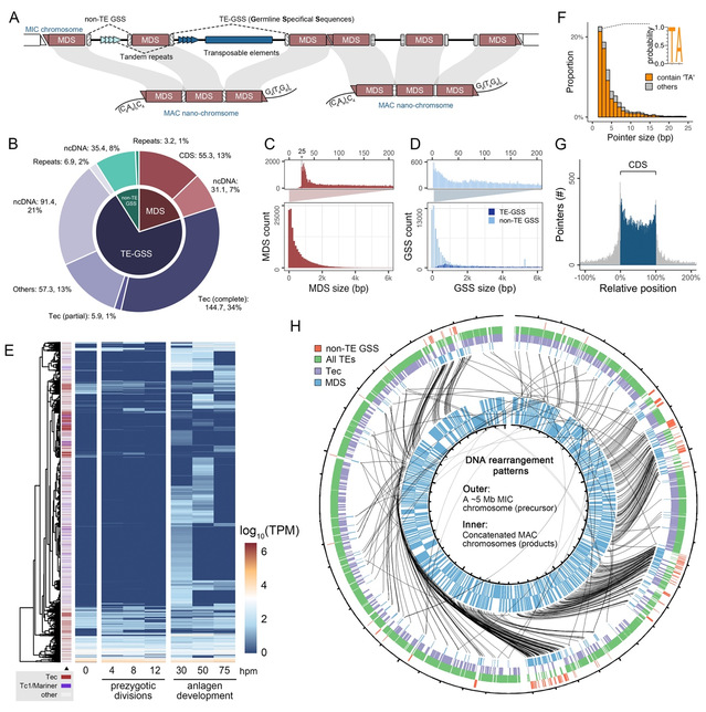 图1. 扇形游仆虫生殖系基因组特征
