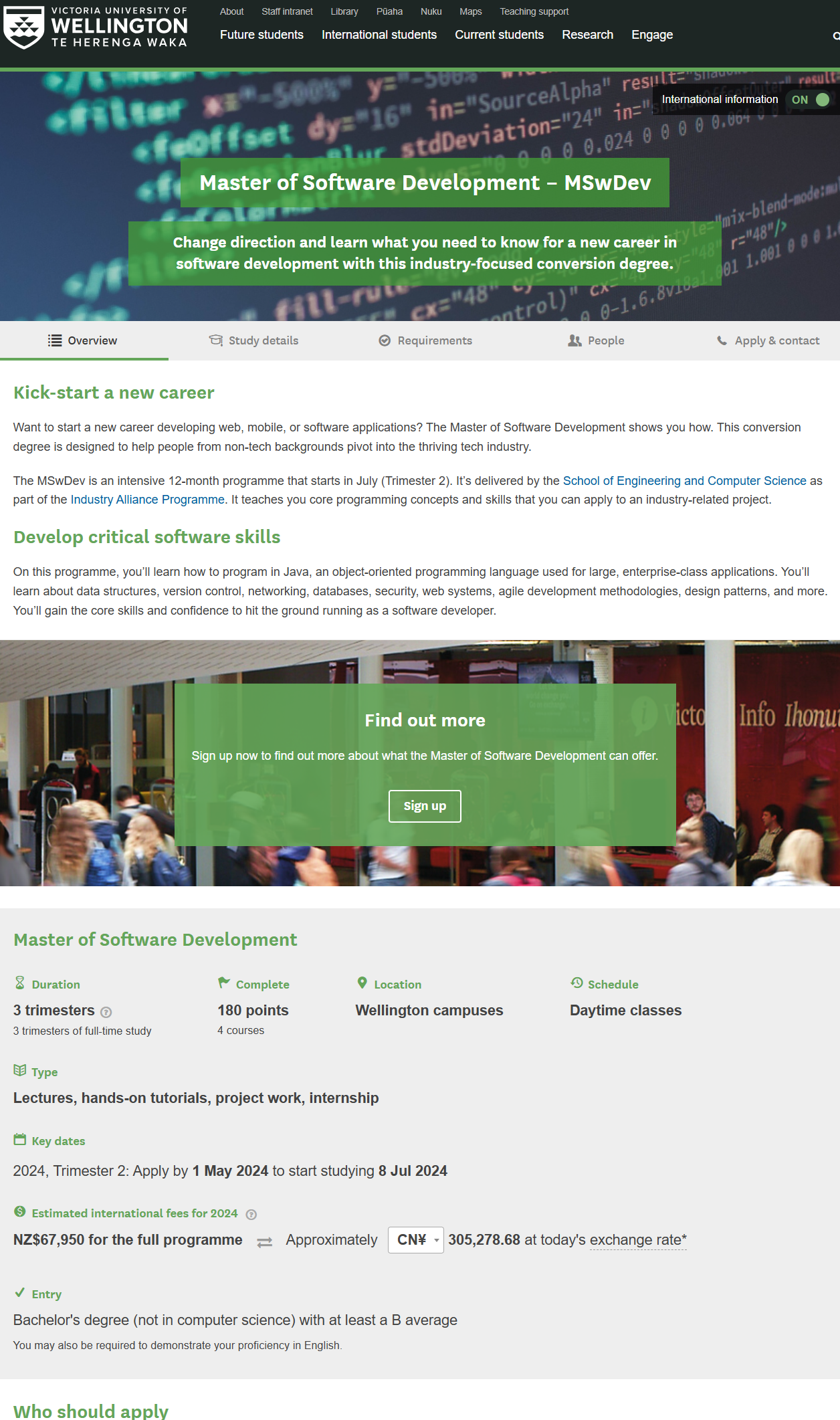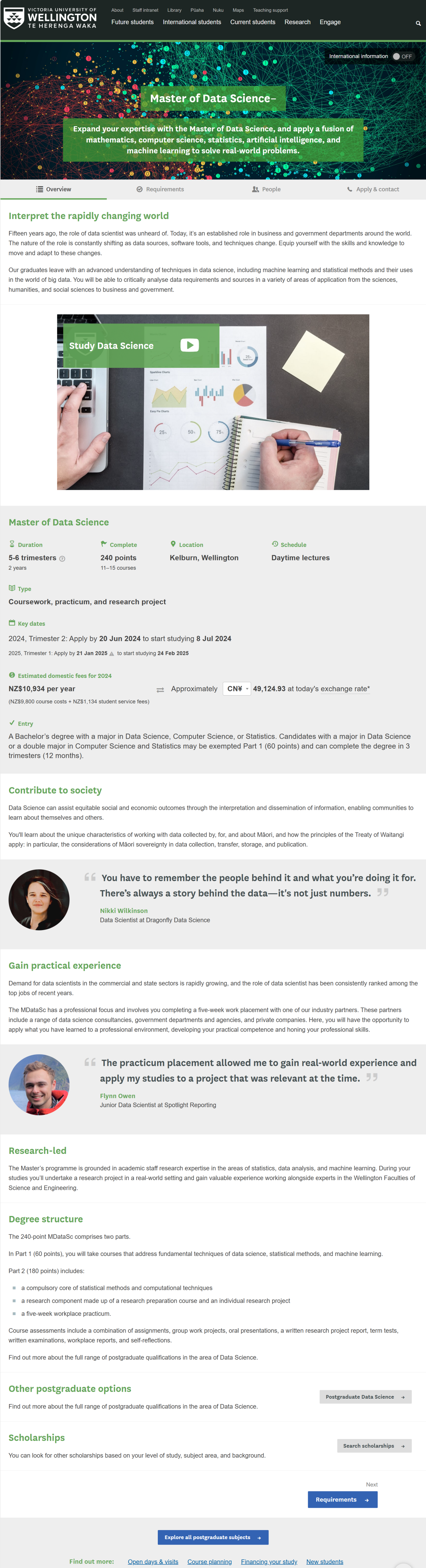 通过本项目录取的硕士研究生,学制三年。第一年在我校学习课程;第二年前往新西兰惠灵顿维多利亚大学学习课程(英文授课),并在实验室实习,符合学位授予要求者将获得新西兰惠灵顿维多利亚大学硕士学位;第三年回到我校进行论文撰写及答辩,通过论文答辩者将获得开云电竞网址硕士研究生毕业证书,符合学位授予条件者经校学位评定委员会审核通过后授予学位,并获得相应学位证书。参加本项目的学生获得我校毕业证及学位证的要求与其他学生一致。