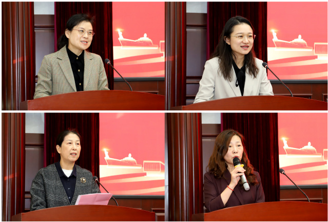 王伟莉(左上)主持会议,马宇虹(右上)、毕芳芳(左下)、陈忠红先后发言