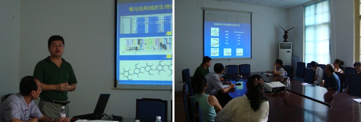 2013年8月28日,应糖生物学实验室于文功教授邀请,山东大学微生物技术国家重点实验室王禄山教授来访实验室,并在海洋馆207会议室做了题为“木质纤维素生物转化中的科学问题及其相关探索”的学术报告。王禄山教授结合自己的研究经历和成果,深入浅出地讲解了木质纤维素生物转化中存在的问题,通过生物信息学、结构生物学等手段,对不同糖水解酶家族纤维素酶的作用机制提出一系列的假说,并通过定点突变、酶促动力学等实验加以验证,阐明了GH12、GH5等家族纤维素酶的演化历史、催化机制和底物结合机制。