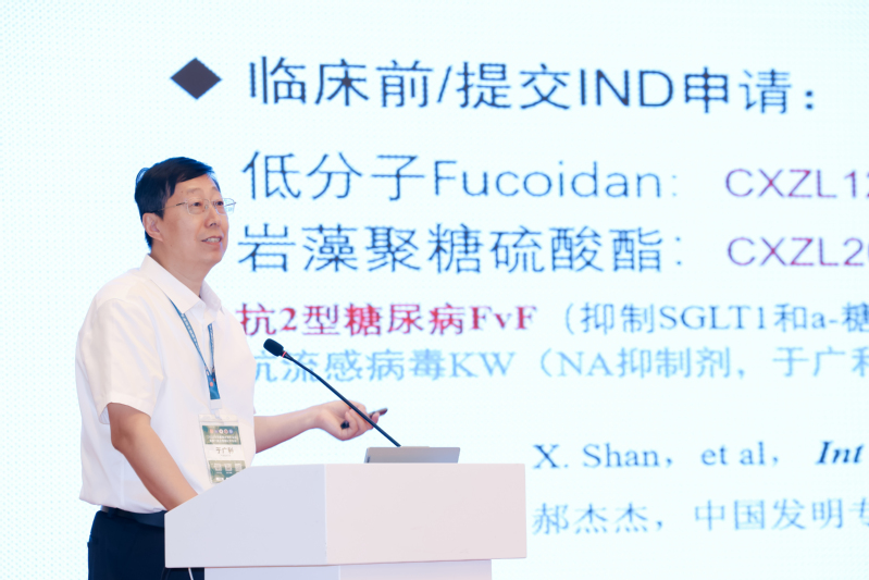 于广利教授受邀做了题为“海洋糖类新药研究开发及成果转化建议”的学术报告,他在报告中首先介绍了海洋糖类化合物的结构独特性和新颖的作用机制,具有较大的成药潜力。目前,国际上市的海洋新药中有6个是糖类药物,中国上市的系列海洋药物中,有13个是糖类药物,包括海洋中药。然而,糖累药物的研发和转化速度仍然较慢,主要原因是糖类药物的结构表征困难、作用靶点不明确和体内代谢过程不清楚等挑战。针对这些问题,于广利教授提出了几点建议:一是以临床需求为导向,关注现有药物的新用途;二是利用抗体药物偶联物ADC等新技术改造糖链,拓展糖类及其复合物的新功能;三是加大对海洋中药多糖的研究,开发糖相关的复方药物;四是加强产学研合作,加快“蓝色药库”的开发,推动海洋糖类新药和糖基医药材料的研发及成果转化。