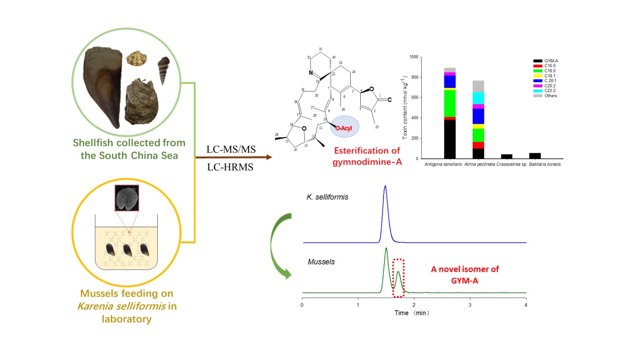 Ji Ying, Che Yijia, Elliott J. Wright, Pearse McCarron, Philipp Hess, Li Aifeng*. Fatty acid ester metabolites of gymnodimine in shellfish collected from China and in mussels (Mytilus galloprovincialis) exposed to Karenia selliformis. Harmful Algae, 2020, 92:101774, doi: 10.1016/j.hal.2020.101774.