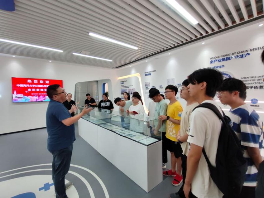 在盛瀚科技展厅,讲解员介绍了国内外离子色谱的发展历史以及一代代离子色谱的开发和更迭,目前公司已实现离子色谱的自主研发和生产,是国内首家批量化生产离子色谱柱的企业。在仪器部件展墙前,盛瀚工作人员就仪器的原理与应用展开了详细介绍,同学们与之积极交流互动,进一步巩固了理论课程中所学的内容,加深了对仪器内部构造的认知。在应用和智造中心,同学们实地观摩离子色谱生产制造组装过程以及台式、便携式、在线式、定制化离子色谱仪,了解仪器的多场景应用。