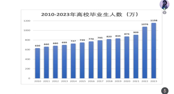 2023级团支部书记张聪通过展示2010年至2023年高校毕业生人数和就业数据等内容,带领团员青年了解当下严峻的就业形势,进一步提高团支部成员对就业准备的重视程度。随后,张聪就本专业的相关就业方向进行介绍和分析,与会团员积极讨论,交流分享经验。2023级张瑞雪提到,研究生期间要注意培养和提高与岗位适配的能力,良好的语言表达、文字写作、逻辑思维和批判性思维能力,对于本专业学生就业至关重要。朱亦婷则从思政课教师方面进行分享,鼓励同学们尽早考出教师资格证。