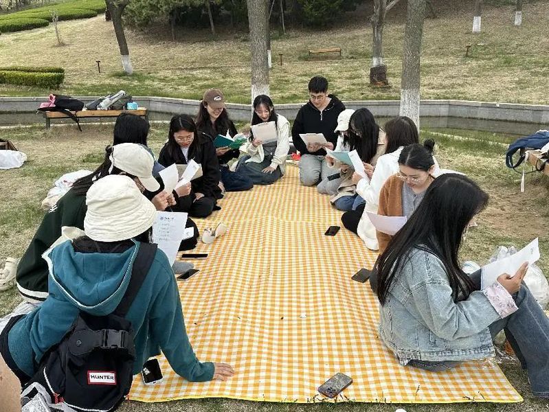 为迎接第29个世界读书日,提升同学们的阅读兴趣与学术素养,促进同学们在读书中思考、在读书中开拓视野、读出生活新感悟,2024年4月22日,马克思主义学院2023级全体研究生开展读书交流活动。本次活动以“春野烂漫 万物复‘书’”为主题,以领学和分享为主要形式,在青岛市雕塑园开展户外阅读,旨在通过新颖的阅读形式和体验,引导同学们积极交流与参与,培养良好的阅读习惯。